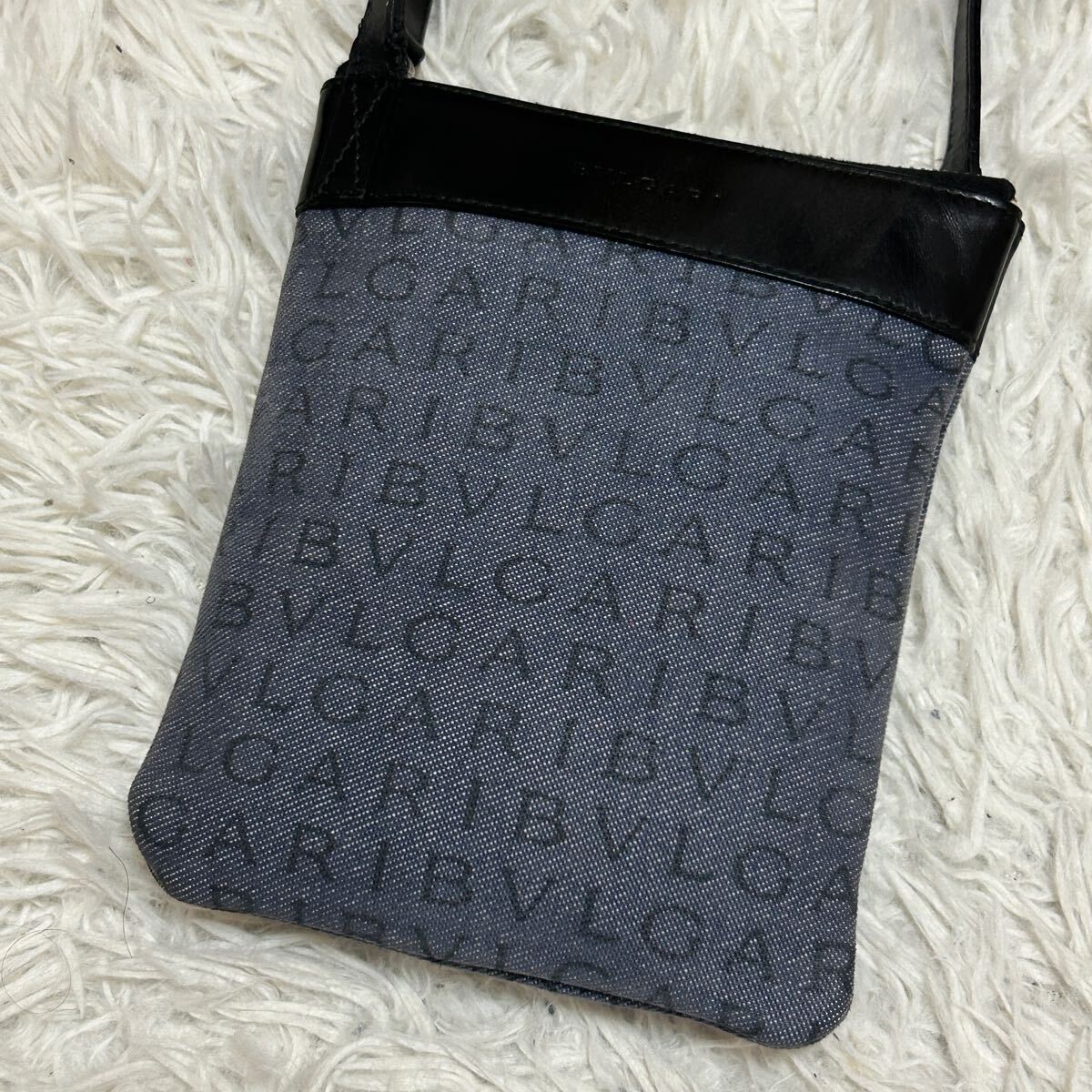 - 1円/入手困難 BVLGARI ブルガリ ロゴマニア サコッシュ ショルダーバッグ クロスボディバック ポーチ 斜め掛け メンズ スマホ デニム 本革