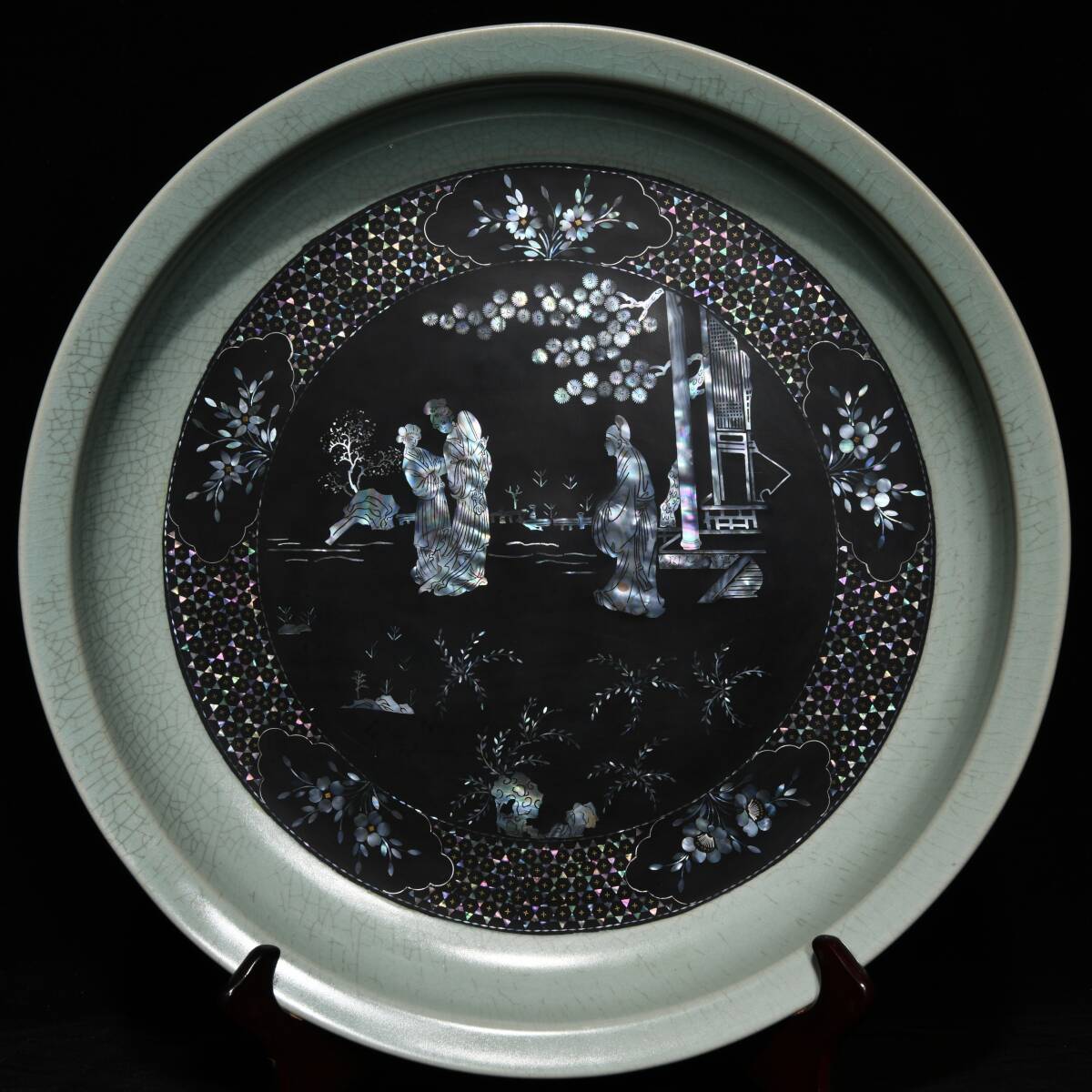 - 唐物 宋 汝窯 螺鈿人物盤 置物 陶芸 古陶磁器 中国磁器 極細工 中国古玩 骨董品 古美味 D68