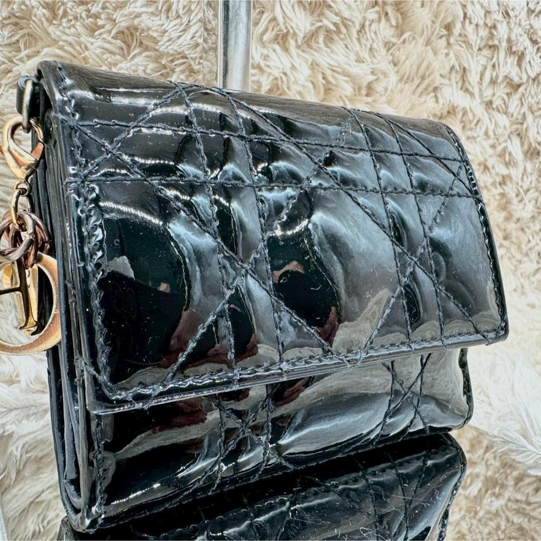 - 【美品】Christian Dior クリスチャンディオール 三つ折り財布 ブラック 黒 パテント カナージュ レディース コンパクトウォレット
