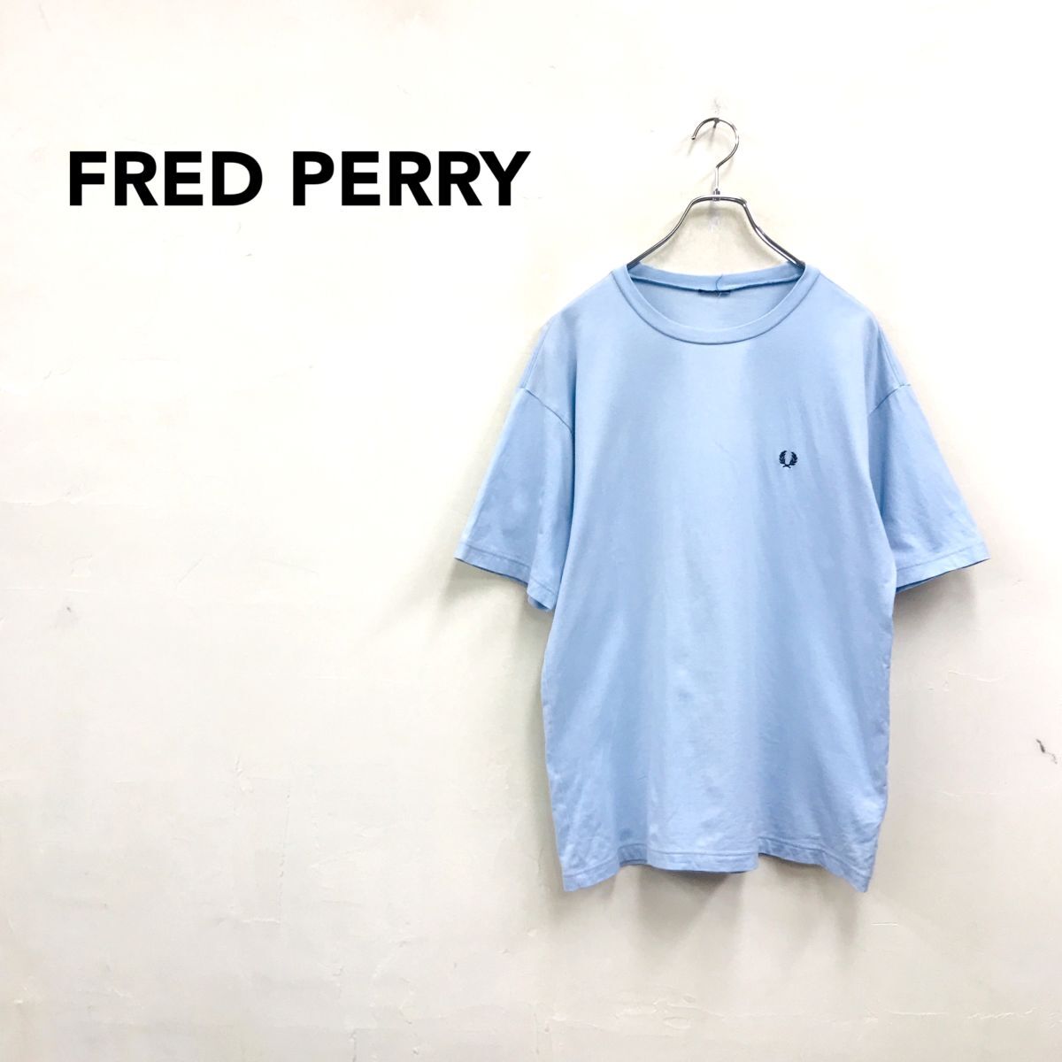 > 2H2946-G-N◆ FRED PERRY フレッドペリー Tシャツ 半袖 ワンポイントロゴ刺繍 シンプル クルーネック リブ ◆ ライトブルー 綿