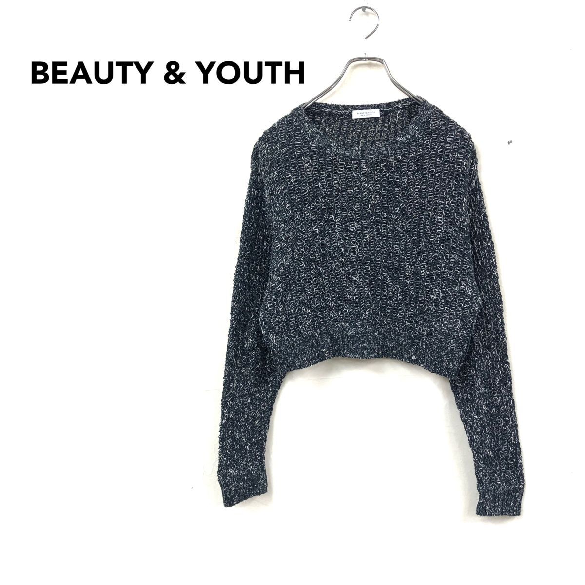 > 2H2786-Y◆BEAUTY & YOUTH ビューティーアンドユース ローゲージニットトップス クロップド丈 重ね着 レディース ◆ブラック系 綿