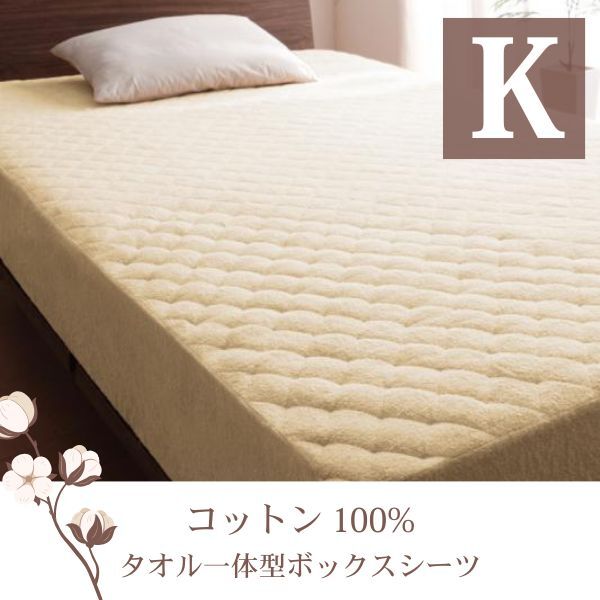 > ザブザブ洗えて気持ちいい!コットンタオルのパッド一体型ボックスシーツ 同色2枚セット キング アイボリー