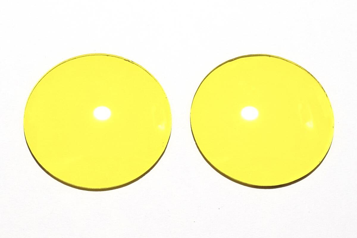 - 1960-1970s デッドストック ガラスレンズ 65mm カリクローム イエロー 度無し サングラス カラーレンズ 交換用 未使用 丸生地 アンカット