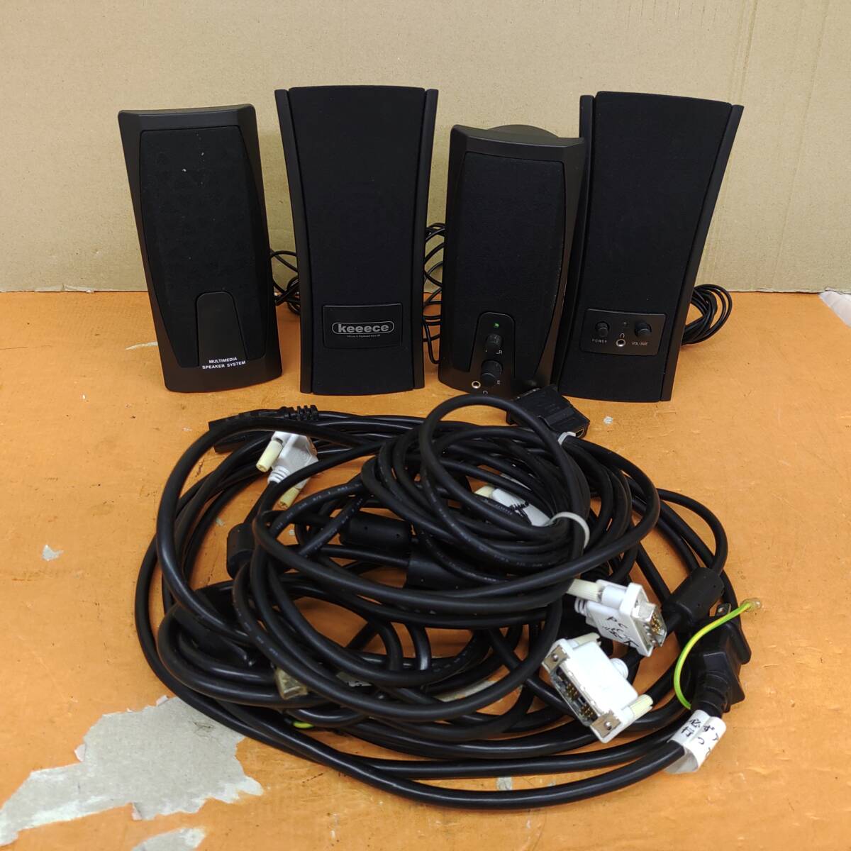 - 長電3910-308♪【80~】スピーカー×2セット 電源ケーブル3ピン×3本 DVIケーブル×2本 DVIコネクタ×1つ まとめ売り 動作未確認未検品