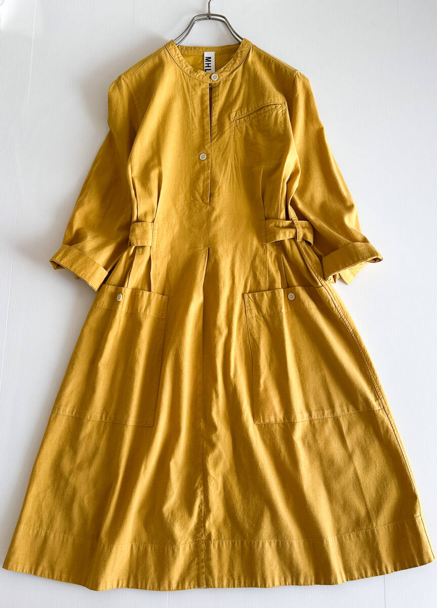 - MARGARET HOWELL マーガレットハウエル MHL. /ロング シャツ ワンピース 黄色 ノーカラー イエロー マスタード