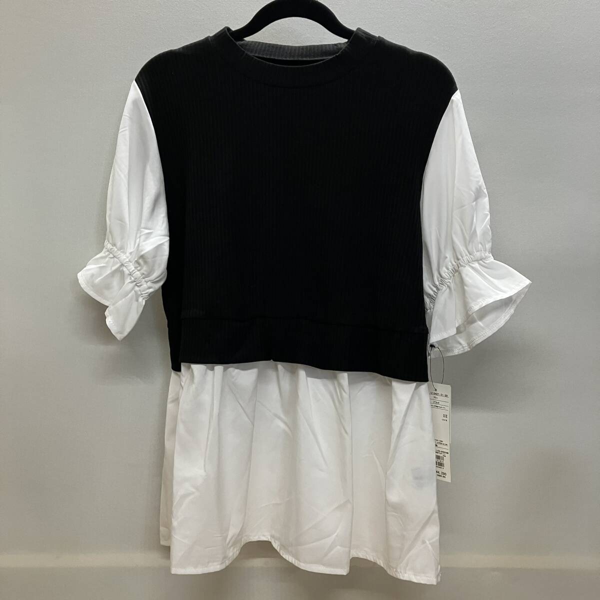 - Melan Cleuge 異素材ドッキング半袖プルオーバー(ブラック)フリーサイズ