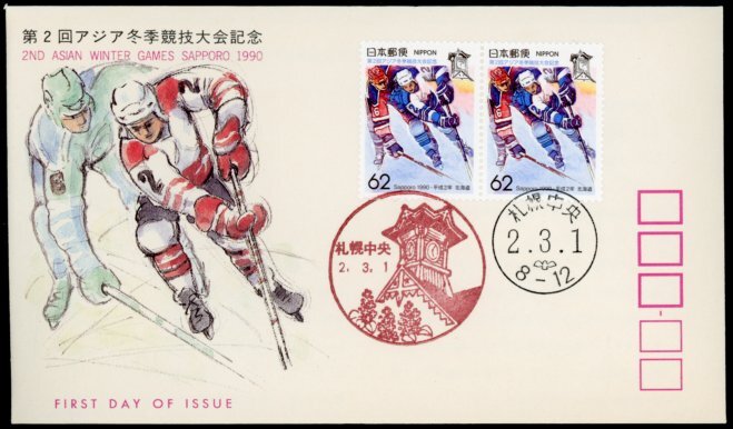 - 1222 【FDC】第2回アジア冬季競技大会[札幌中央/2.3.1/切手普及協会]