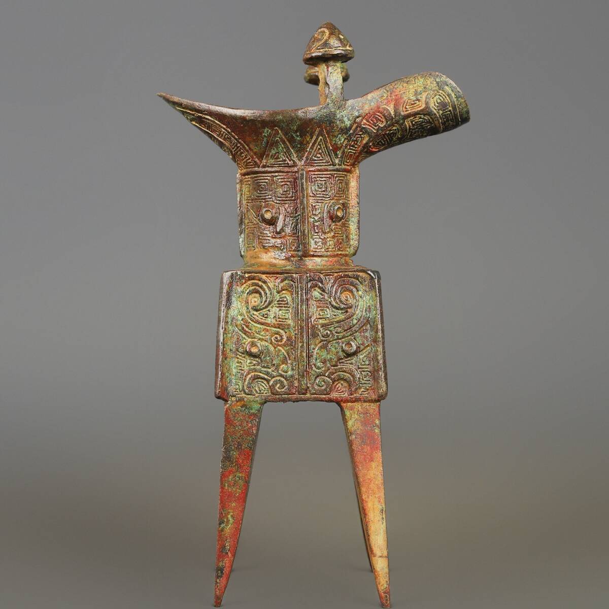 - 蔵友旧蔵出 西周 青銅作 四方爵杯 希少珍品 貴重品 置物 古賞物 中国古玩 中国古美術品 館蔵品
