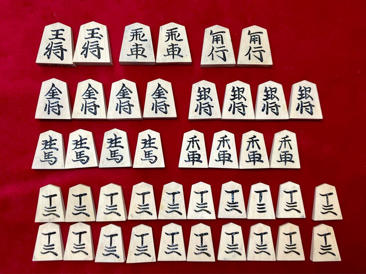 - 光花作 在銘 高級 将棋駒 黄楊彫 歩20枚 現状品 彫り駒 彫駒 将棋 伝統工芸 木工芸 古美術 骨董 時代物