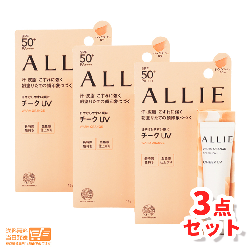 - ALLIE アリィー クロノビューティ カラーオンUV チーク 02 オレンジ 15g 3個セット カネボウ 追跡可能メール便発送