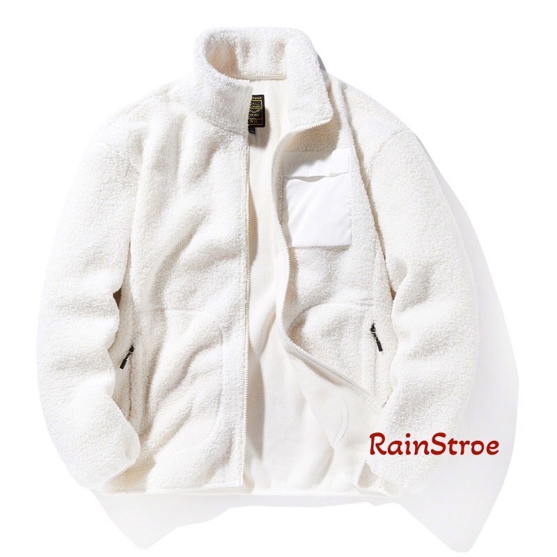 > メンズボアジャケット 暖かい フリース 保温 アウター ブルゾン ホワイト 3XLサイズ ライトアウター ジップジャケット マウンテンパーカー