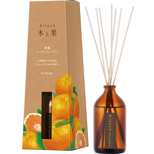 - 消臭・芳香剤(リードディフューザー)KITOCA・木と果 オレンジ (天然精油100%使用)90ml/日本製sangoaroma