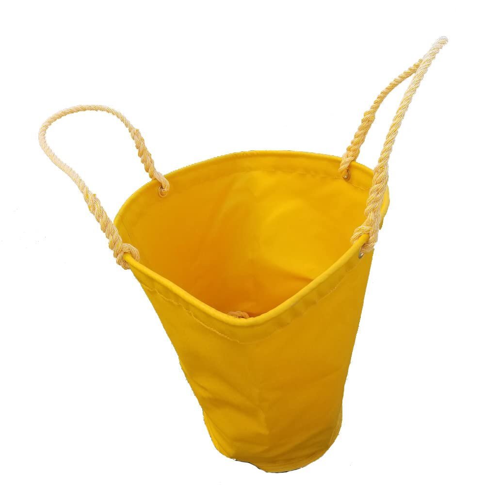 ブランド:ZERO説明コンクリートミキサー車シュートの洗浄用袋。生地:ターポリン生地、黄色、厚さ約0.6mmサイズ:(袋上部)430φ、(袋下部)250φ、(袋深さ)500mm洗車袋の底生地を二重にしています。側面、底に生コンが付着しにくくするため、生地の端が外側になるように裏返したように縫製しています。大型コンクリートミキサー車シュートの洗車、洗浄