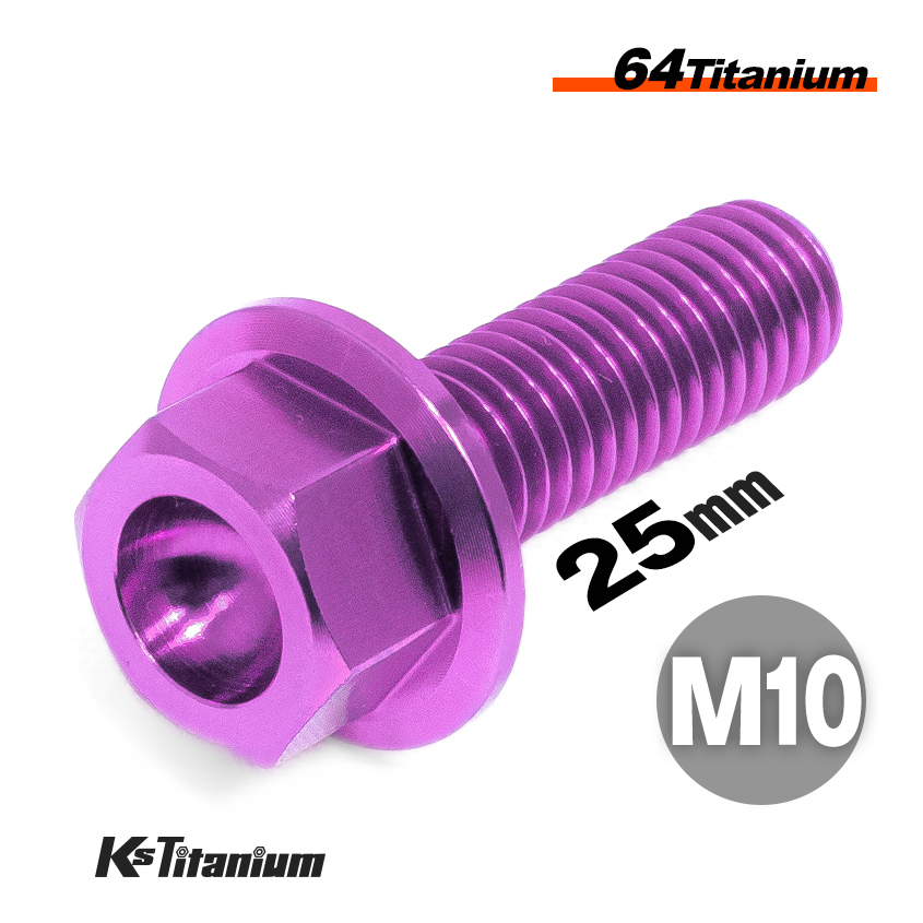 > チタンボルト M10×25 P1.25 パープル 1本売り 64チタン フランジボルト スレッド FULL(全ネジ) バイク レストア パーツ