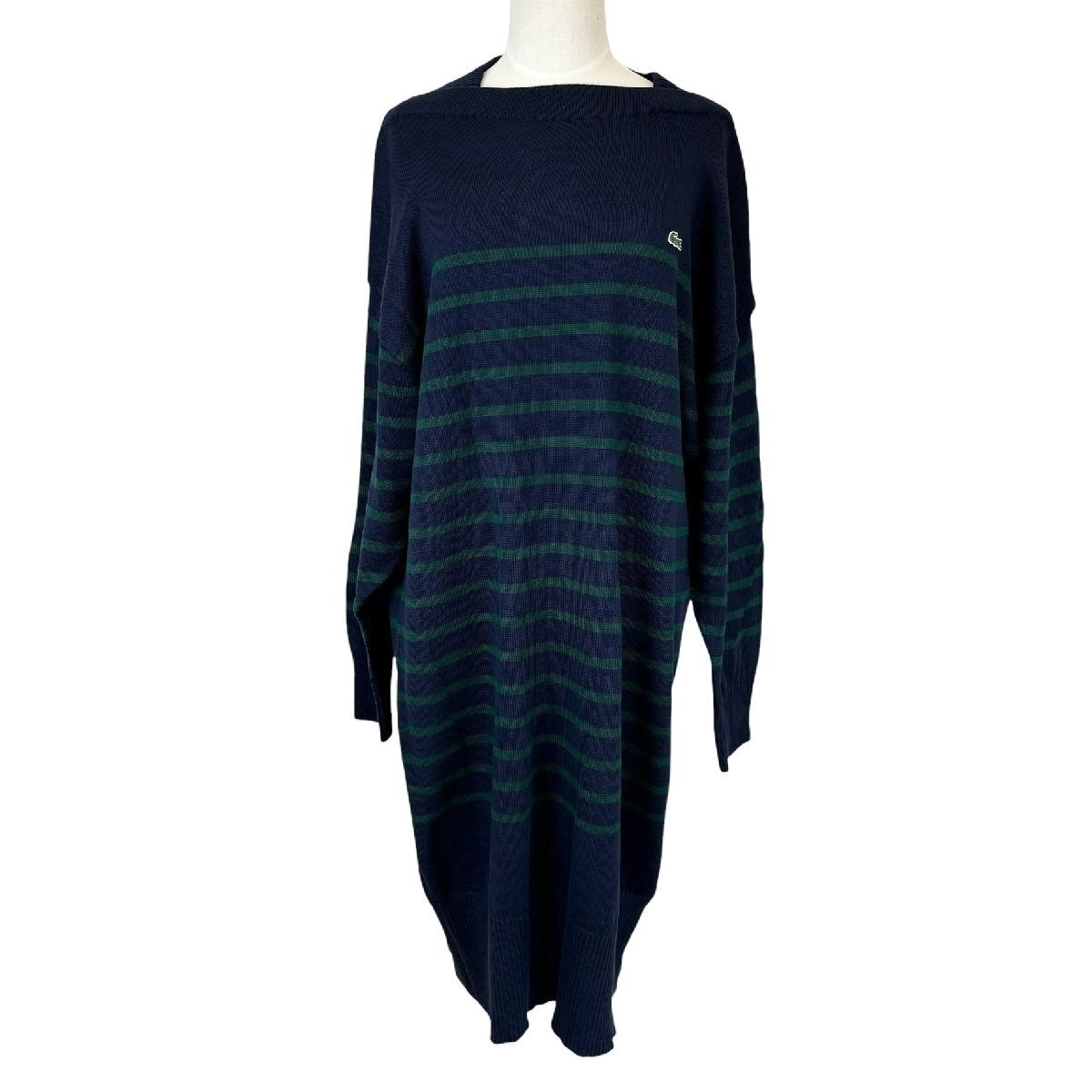 - 中古 ラコステ LACOSTE ストライプ ニットドレス 長袖 ニットワンピース ボーダー柄 レディース サイズ38