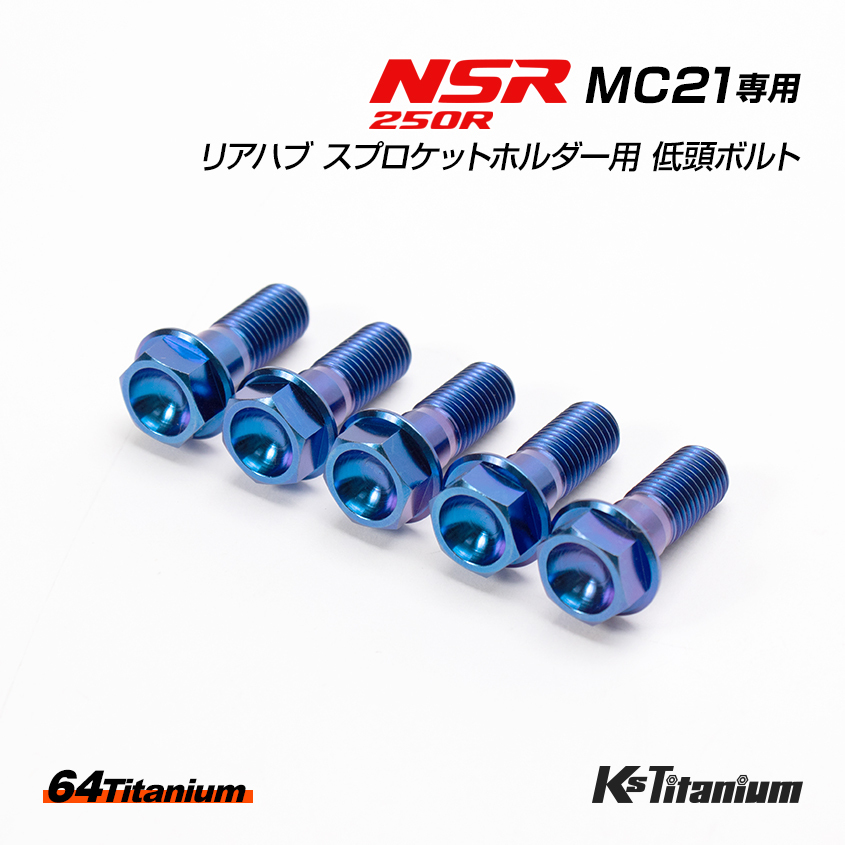 > NSR250R MC21用 リアハブ スプロケットホルダー用 チタンボルト ブルー 5本セット 64チタン ローヘッドフランジ チタン