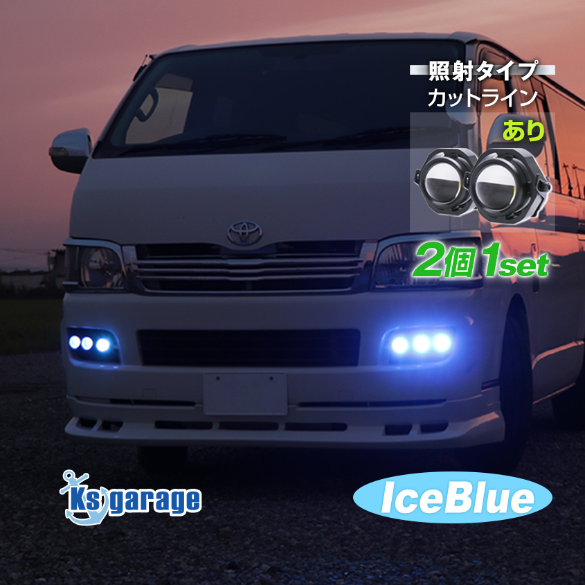 - LED フォグランプ 後付け 2個セット アイスブルー カットラインタイプ 12000k 10w 丸目 プロジェクター 汎用 フォグライト 12v 24v 兼用