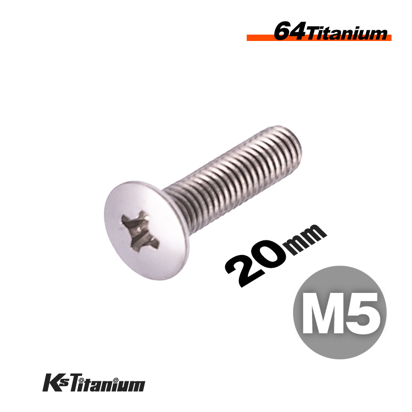 - 64チタン ボルト M5×20 全ネジ P0.8 1本売り チタン無垢色 シルバー 超低頭 十字穴 プラスネジ バイク レストア パーツ チタン カスタム