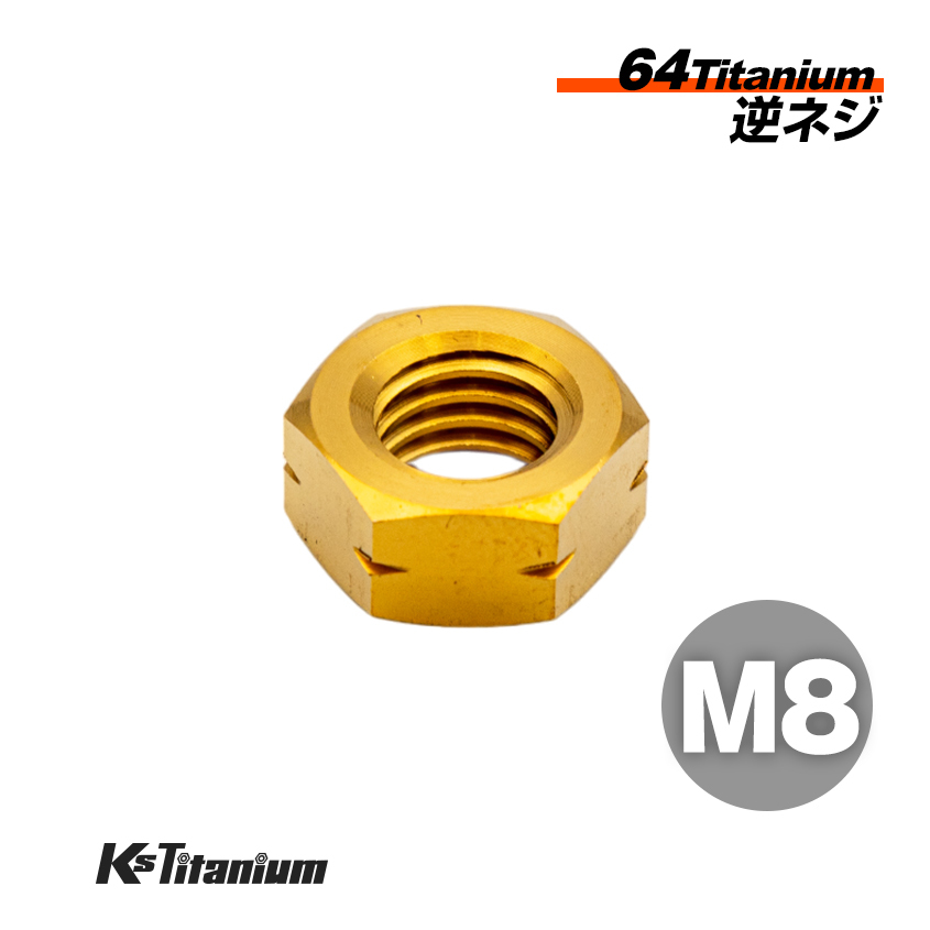 - チタンナット M8 ゴールド 1本売り 64チタン ナット 逆ネジ バイク レストア パーツ チタンボルト