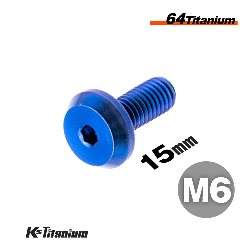 > チタンボルト M6×15 P1.0 ブルー 1本売り 64チタン テーパーヘッド ボタンボルト 全ネジ バイク レストア パーツ