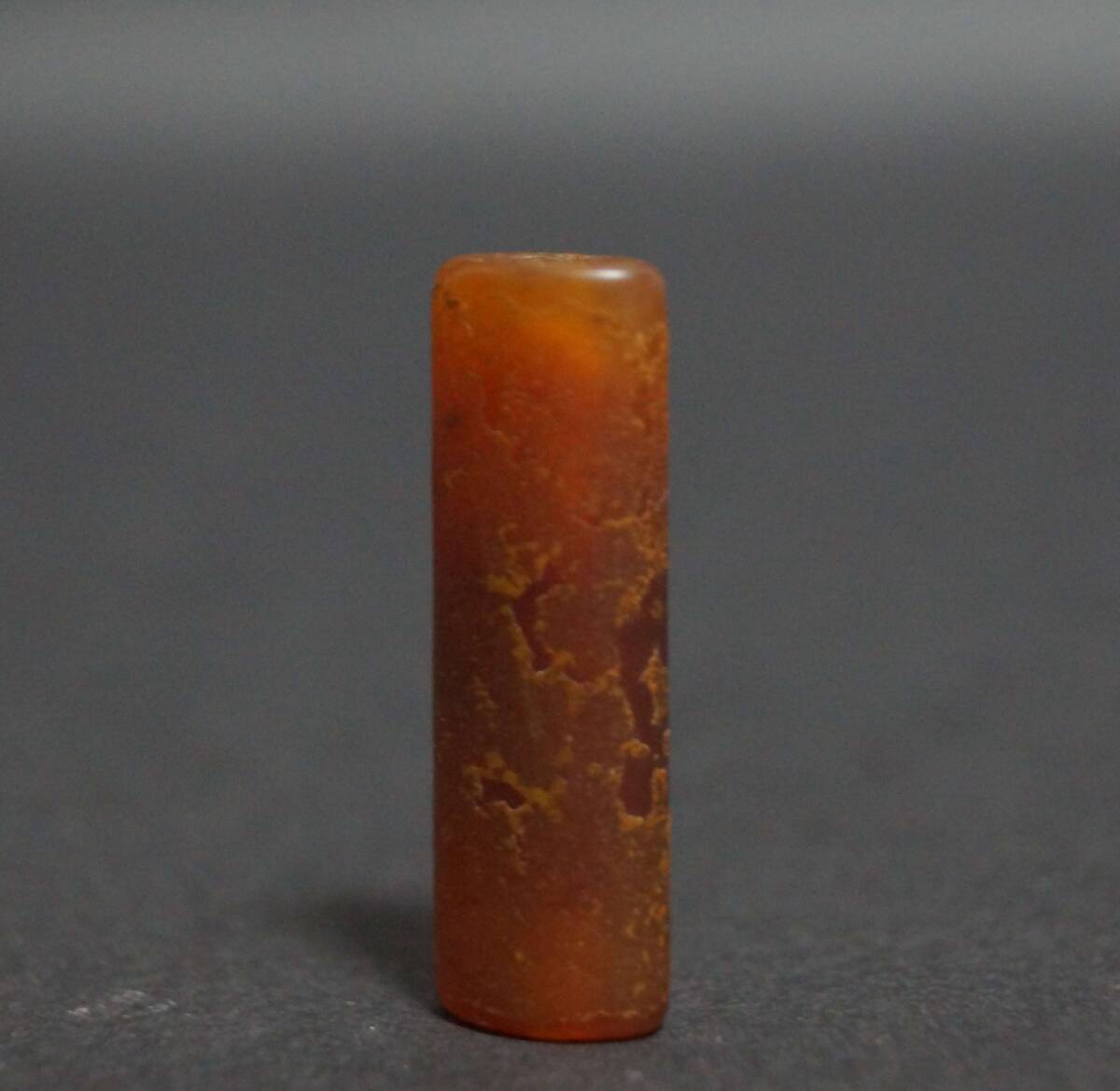 - 【寂】オールドチベット メノウ 瑪瑙 根付 緒締玉 アゲート 提げ物 Dziビーズ 装飾品 長さ3cm☆時代物☆s70902