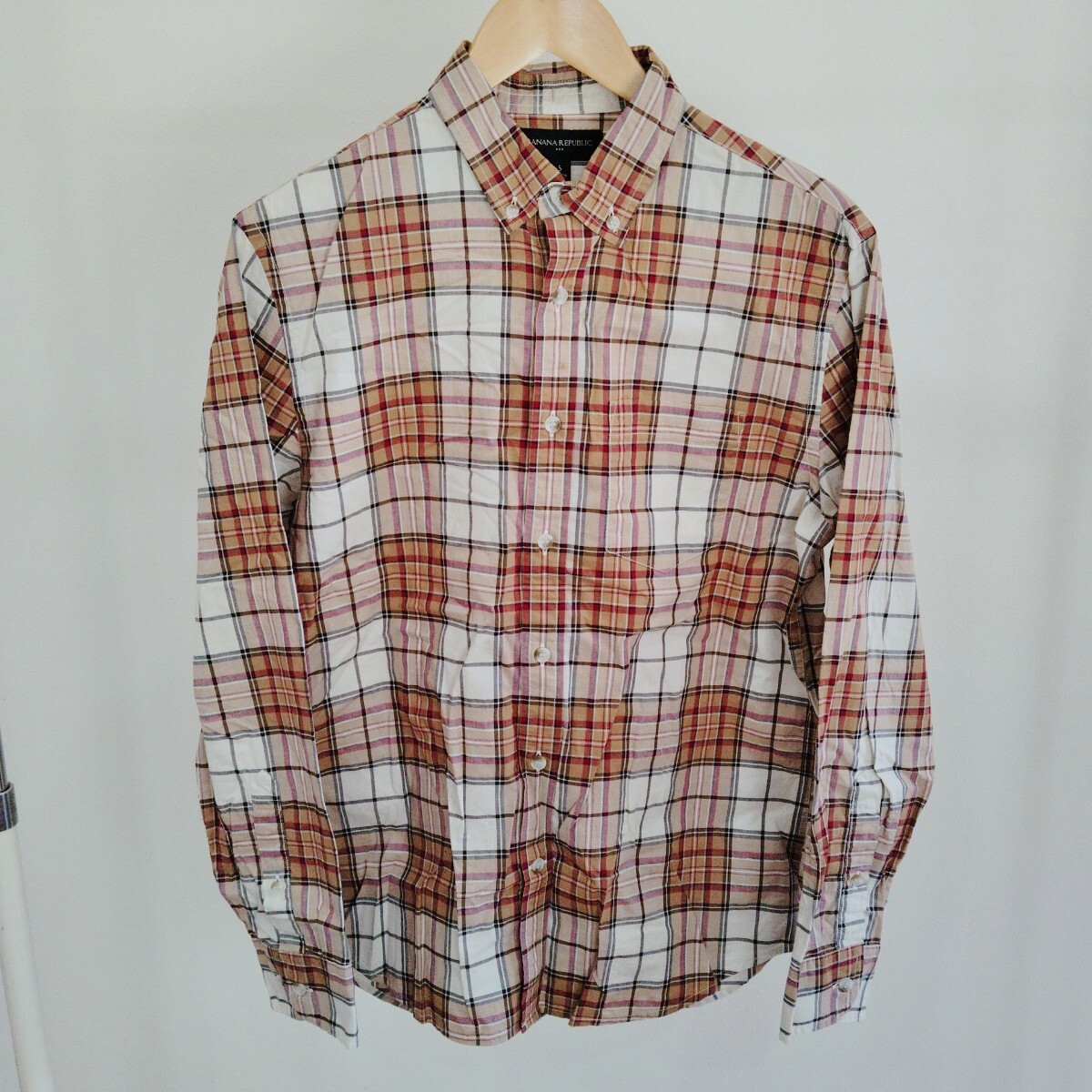 - 0902/S/BANANAREPUBLIC メンズ 長袖シャツ ブラウス チェック柄 ブラウン