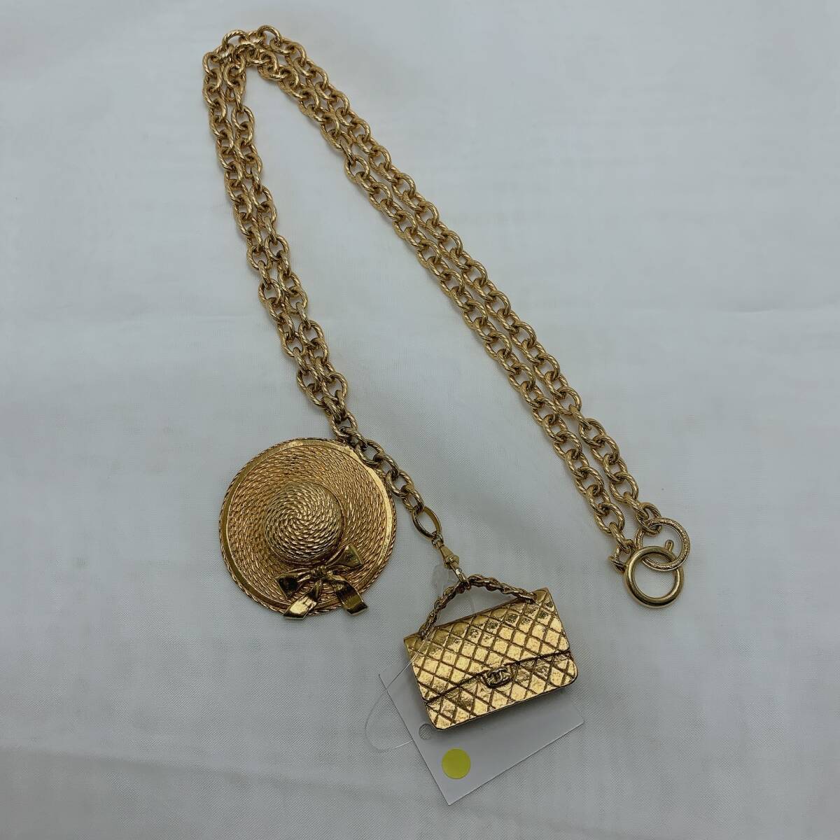 > ZA63○ CHANNEL シャネル ネックレス オールドシャネル ヴィンテージ マトラッセ 麦わら帽子 GLD メッキ ロングネックレス