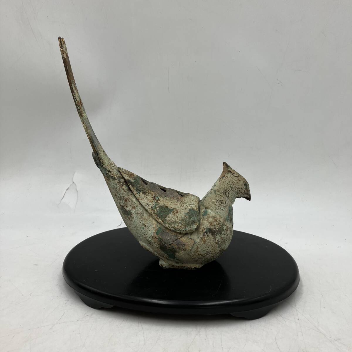 - 【中古美品】香炉 キジ 雉 置物 オブジェ 飾り 美術 芸術 台あり 1点
