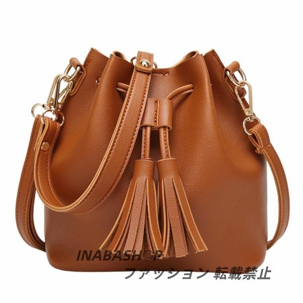 - バケットショルダーバッグ巾着バッグ財布ハンドバッグスモールショッピングブラウン
