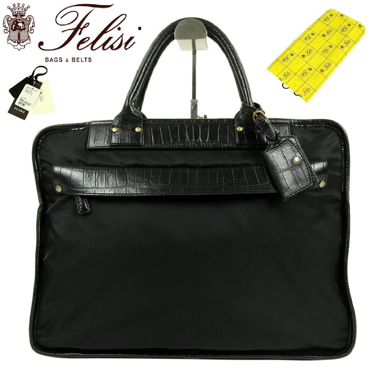 > 【M427】【極美品】【保存袋付】Felisi×BEAMS フェリージ ビームス ビジネスバッグ ブリーフケース ナイロン×レザー 型押し 別注 8637/3