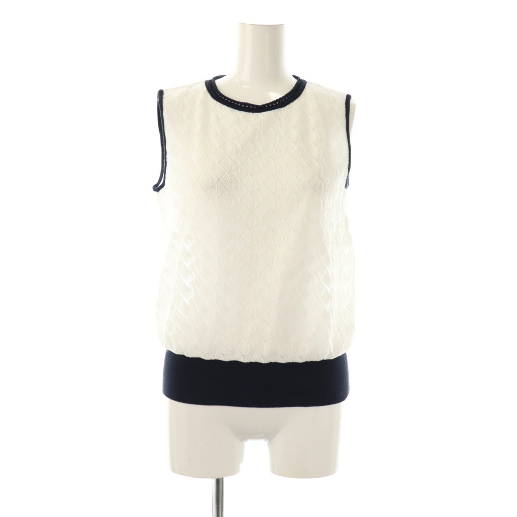 > アナイ ANAYI 刺繍ノースリーブニット カットソー バイカラー 38 白 黒 /CX ■OS ■SH レディース