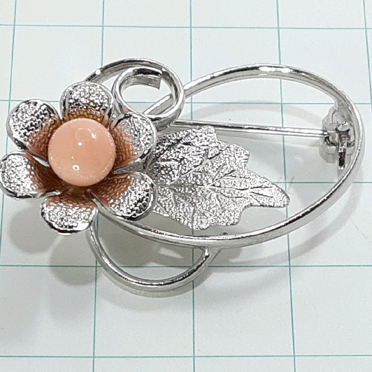 - 送料無料)ビンテージ☆珊瑚風 お花モチーフ☆アンティーク ブローチ A31832
