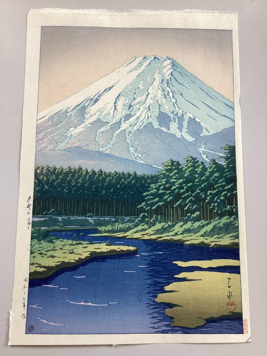 - (セール)10/14-28 新版画 川瀬巴水 「忍野の富士」(渡邊 後摺/平成摺・赤判) 美品 本物保証