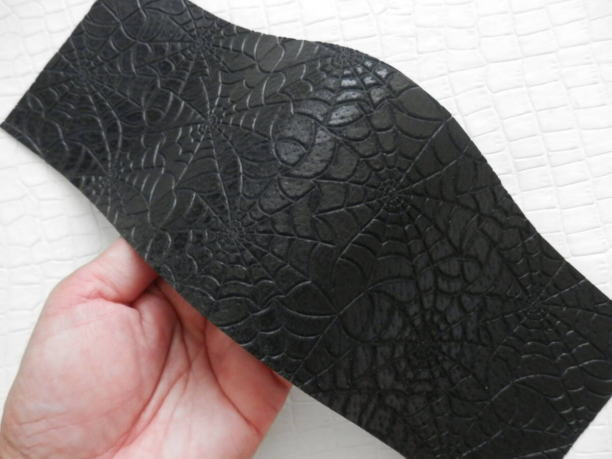 - 豚革 スパイダーウェブ 型押し ブラック 半艶 ビリヤード 本革 レザー グリップ