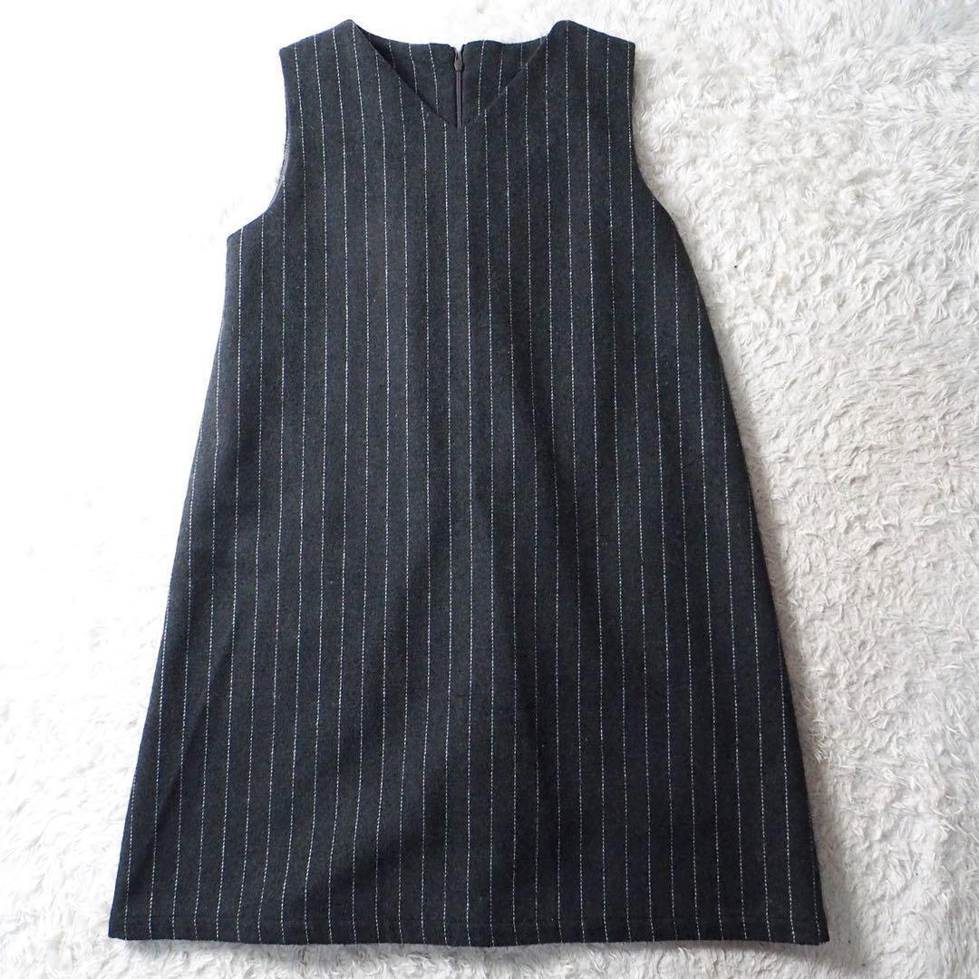- ドゥドゥ DouDou ロングベスト ワンピース ウール混 グレー ストライプ柄 ツイード Aライン レディースMサイズ