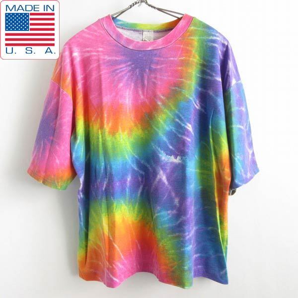 > USA製 タイダイ染めプリント 半袖Tシャツ コットンポリ 袖裾シングルステッチ アメリカ製 ビンテージ D143-01-0213ZVW