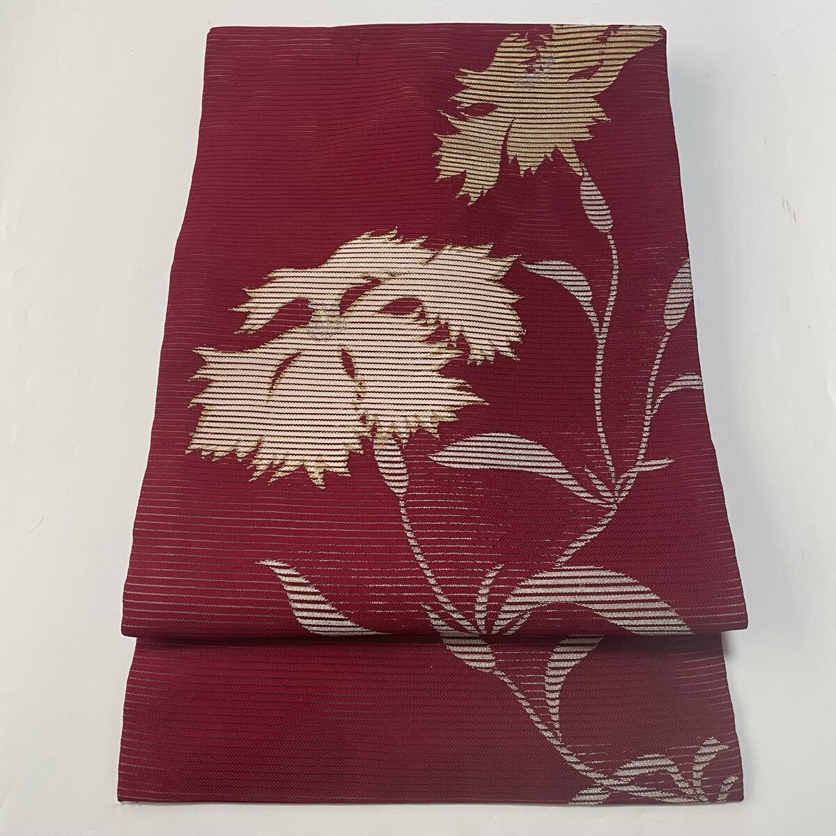 - #H915 美品 名古屋帯 九寸 絽 金銀糸 撫子 正絹 夏帯 和装 和服【wellriver】