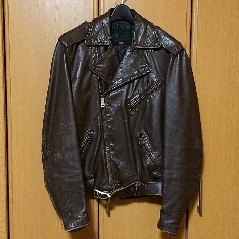 > BROOKS ブルックス ダブルライダースジャケット 36 38 ブラウン USA製 60s 60年代 schott VANSON BUCO ヴィンテージ レザージャケット