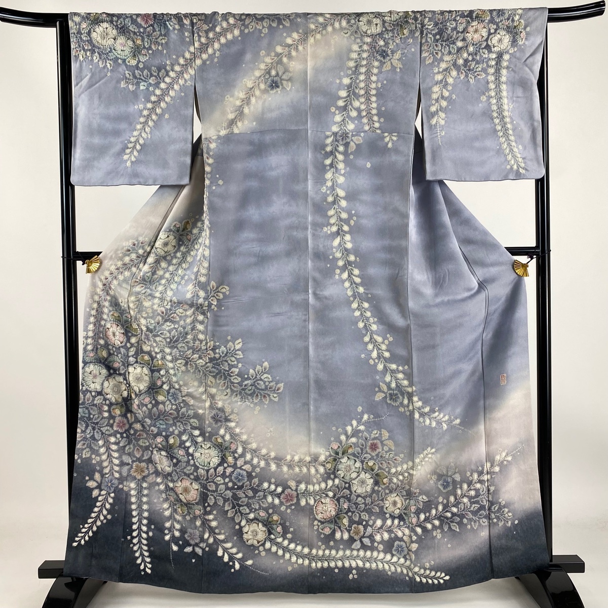 - 訪問着 身丈163cm 裄丈65cm M 袷 翠山工房 落款 辻が花 銀通し ぼかし 薄紫 正絹 逸品 【中古】
