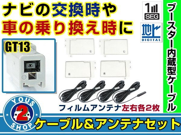 > メール便送料無料 四角型フィルムアンテナ左右付き◎ブースター内蔵コード4本 三菱 NR-HZ750CD-DTV 2008年 左右L型 GT13 カーナビ載せ替え