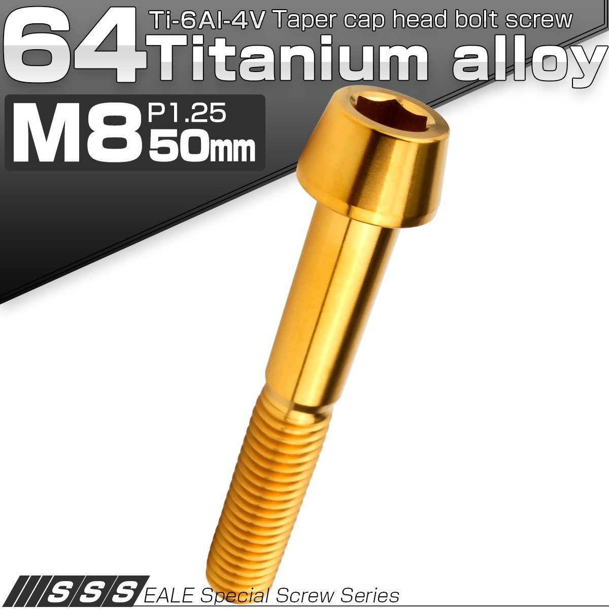 - チタンボルト M8×50mm P1.25 キャップボルト 六角穴付 テーパーヘッド ゴールド JA2214