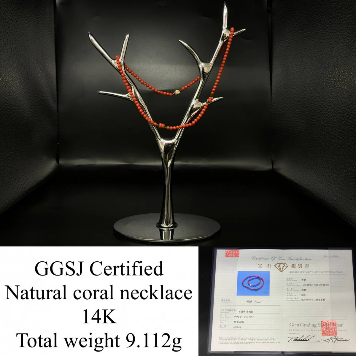 > 赤珊瑚 ネックレス (さんご サンゴ) 宝石鑑別書付き 14K 総重量9.112g ネックレス全長約43cm 6595YY