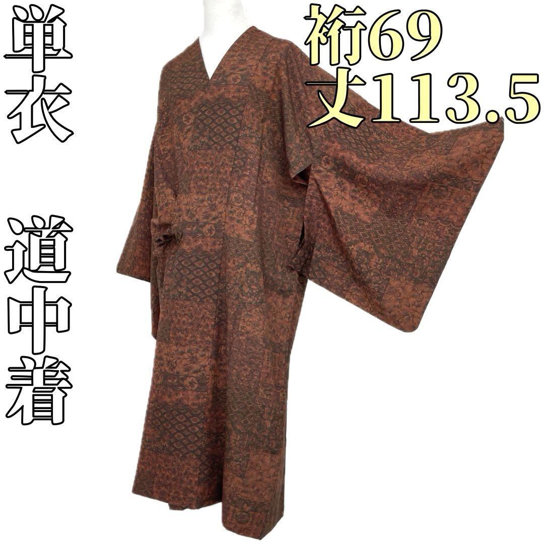 - 【着物と帯 時流】コ25963◆単衣 道中着◆ロング丈 裄ロング 更紗 美品