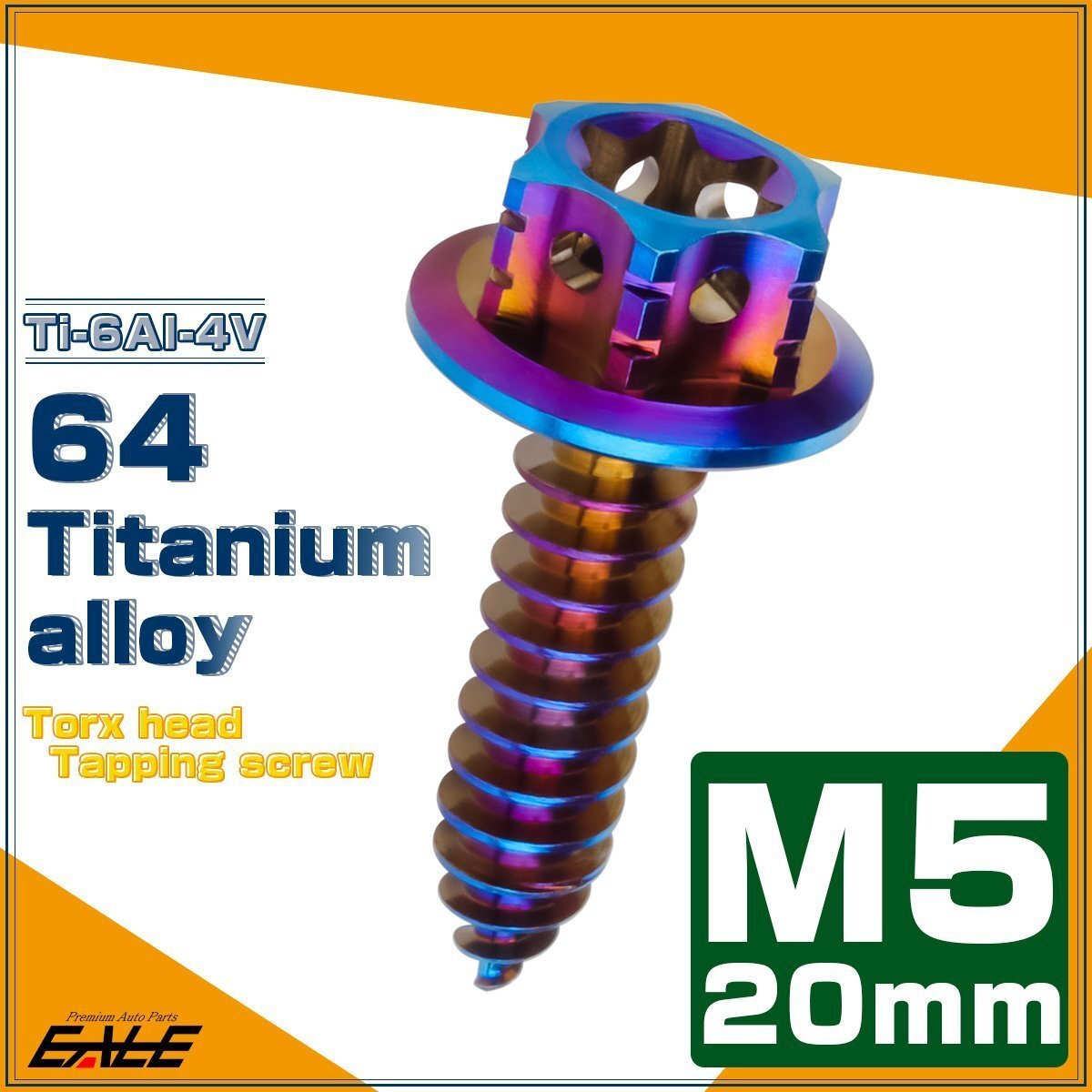 > 64チタン製 M5×20mm タッピングネジ トルクス穴 フランジ付 ヘキサゴンヘッド ビス 焼きチタン ダークカラー JA1209