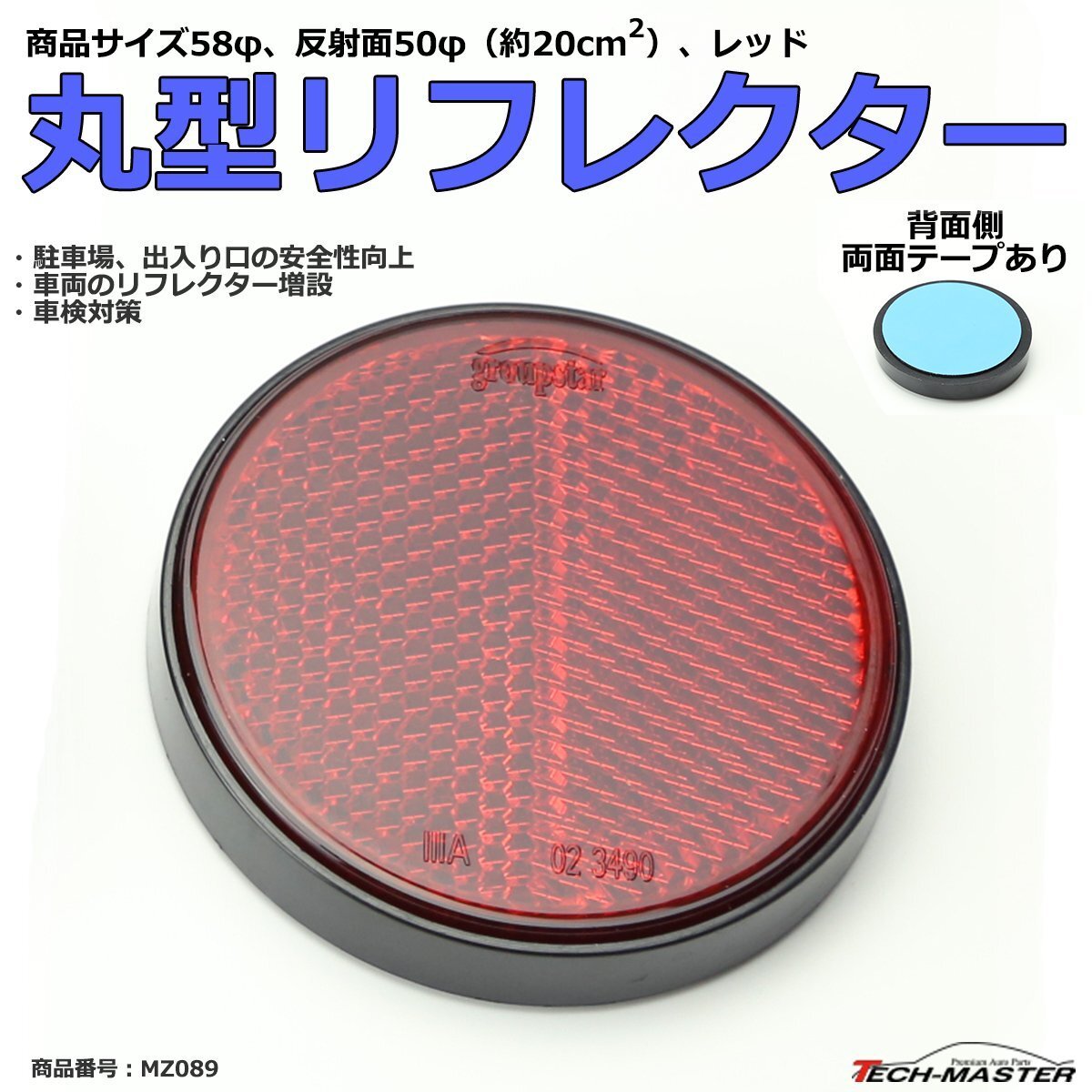 - 汎用 リフレクター 丸型 レッド 反射面50φ 約20平方cm 車検対策や安全確保 1個 MZ089