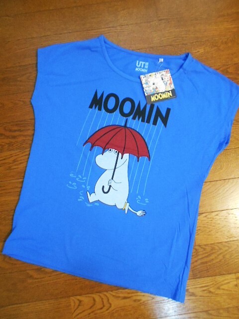> UNIQLOxMOOMIN・ユニクロxムーミン☆かわいいアンブレラムーミンビックプリント フレンチスリーブTシャツ レディース ゆったり目S 未使用品