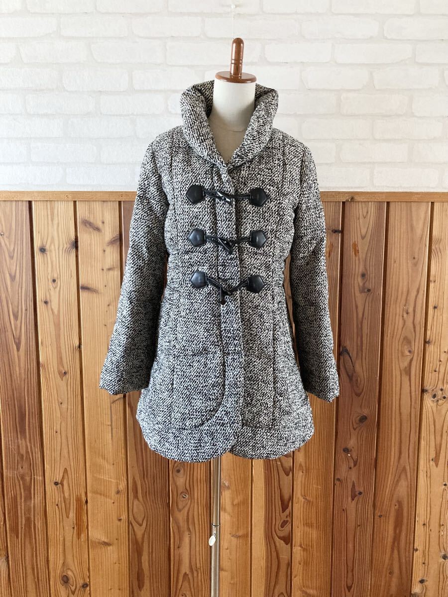 > LAURA ASHLEY レディース ダウンコート 黒 白 9号 Mサイズ ダッフル ボタン ダウン&フェザー ジャケット down coat ローラアシュレイ