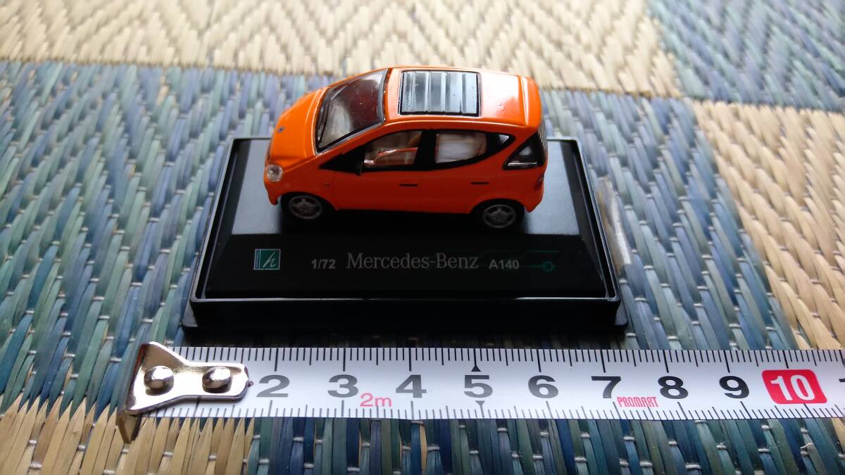 - 自動車模型 メーカー不明 1/72 メルセデスベンツ A140 オレンジ ノーマル 新品未使用 ショーケースに汚れ、キズあり