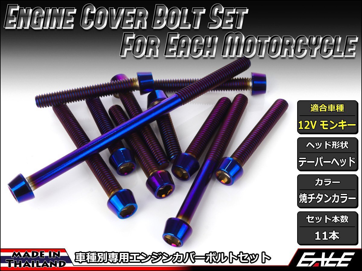 > 12Vモンキー用 エンジンカバー ボルト11本セット ステンレス製キャップボルト使用 テーパーヘッド 焼チタンカラー TB6115