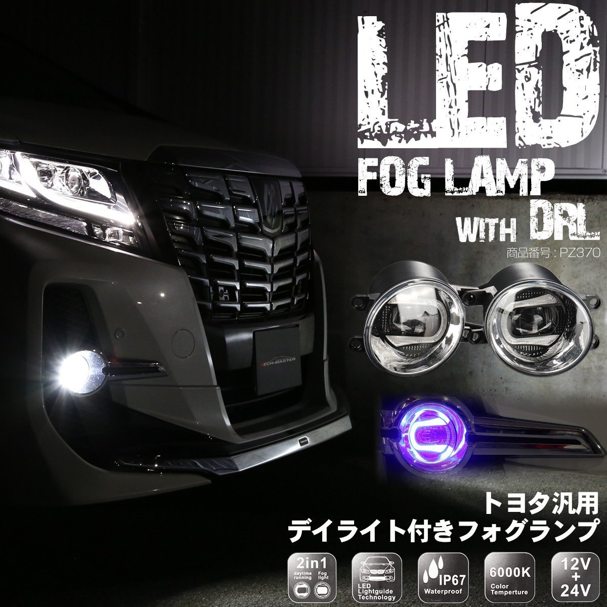 > トヨタ 汎用 LED フォグランプ デイライト ブルー発光付き 30系 アルファード ヴェルファイア 160系 カローラ 170系 シエンタ など PZ370